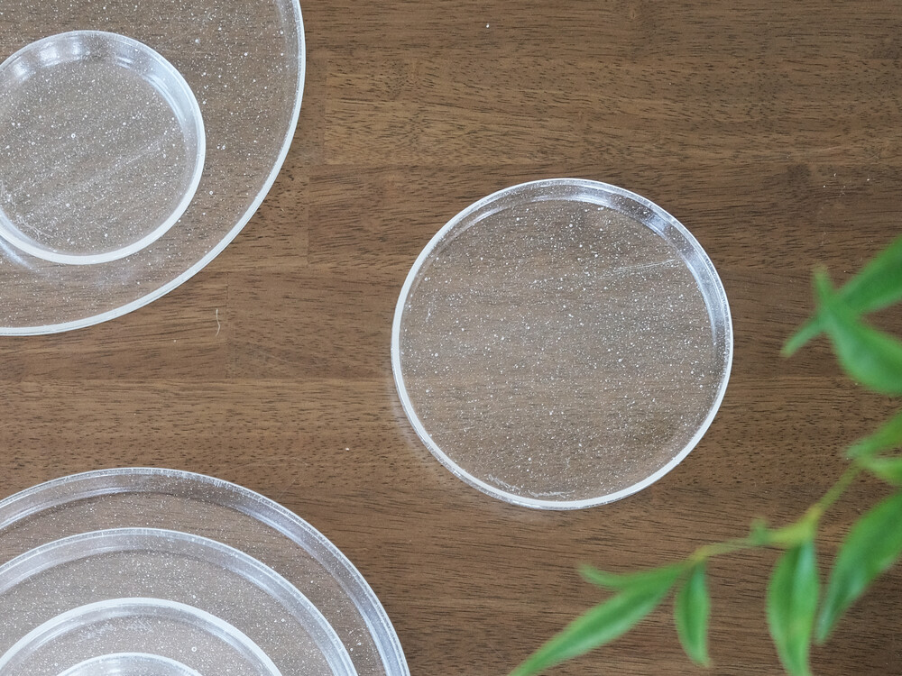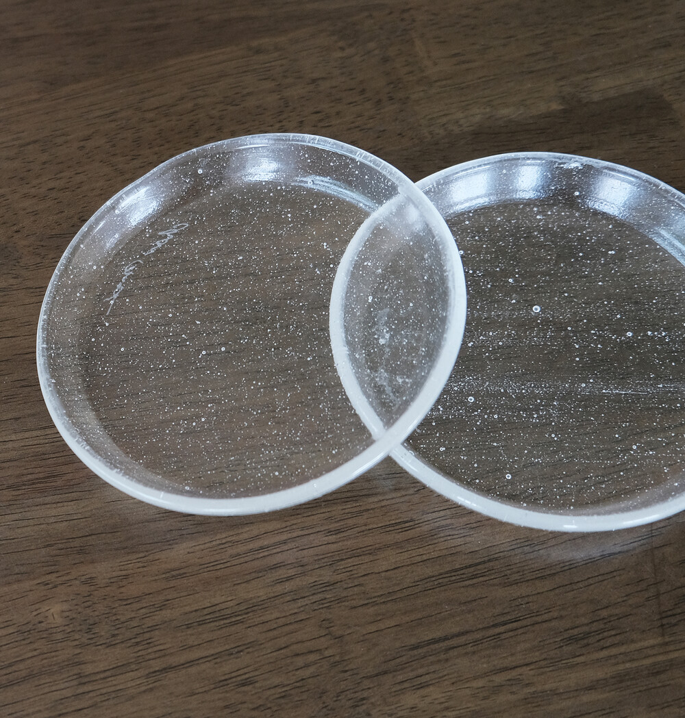 실험도구중 샬레의 형태에서 착안하여 제작된 플레이트로 다양한 음식을 서빙하기에 적합합니다.