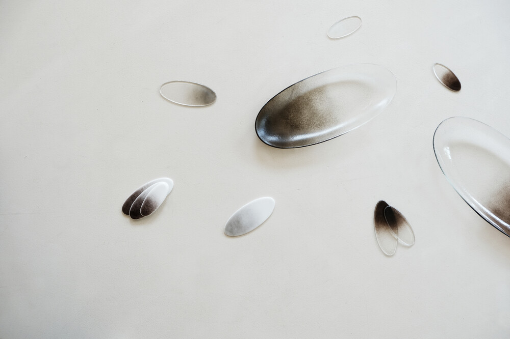 투명한 유리로 만들어진 수저받침은 자연광 아래에서 가장 아름다우며,