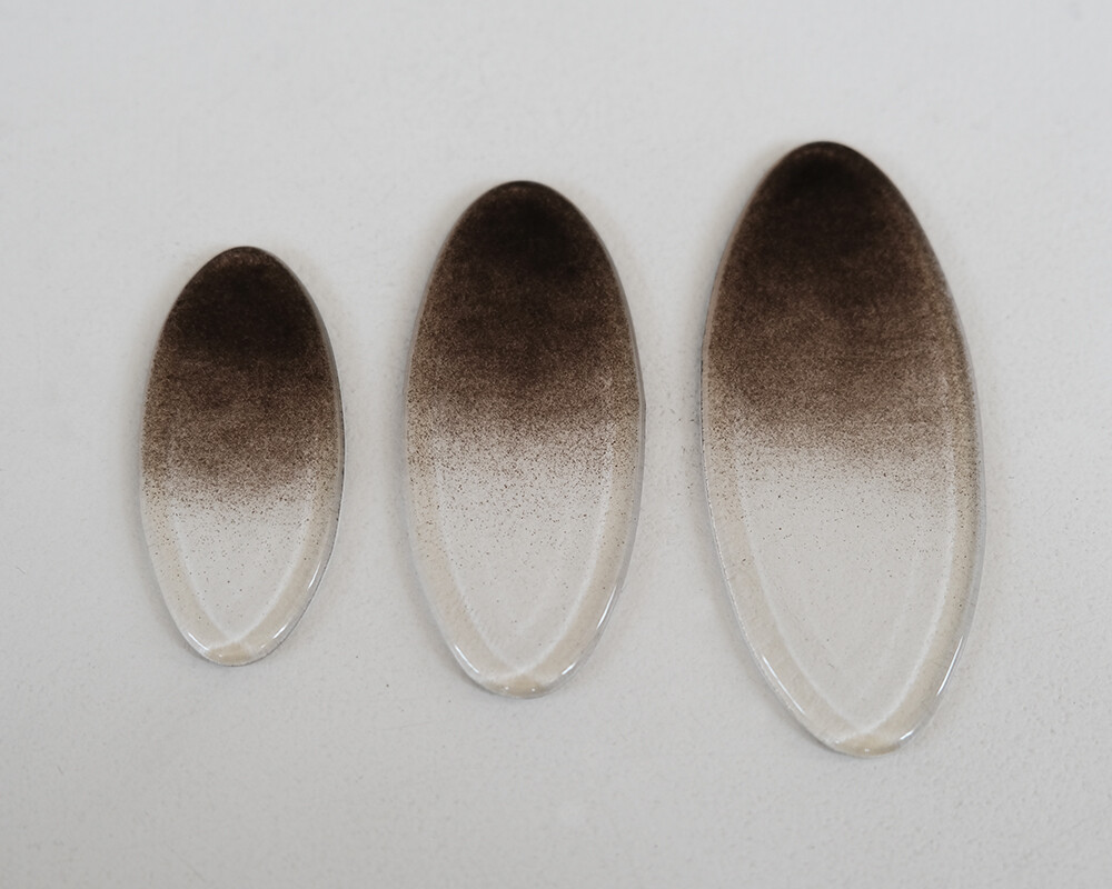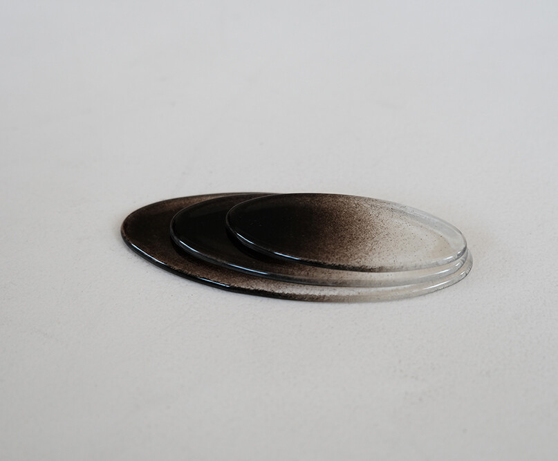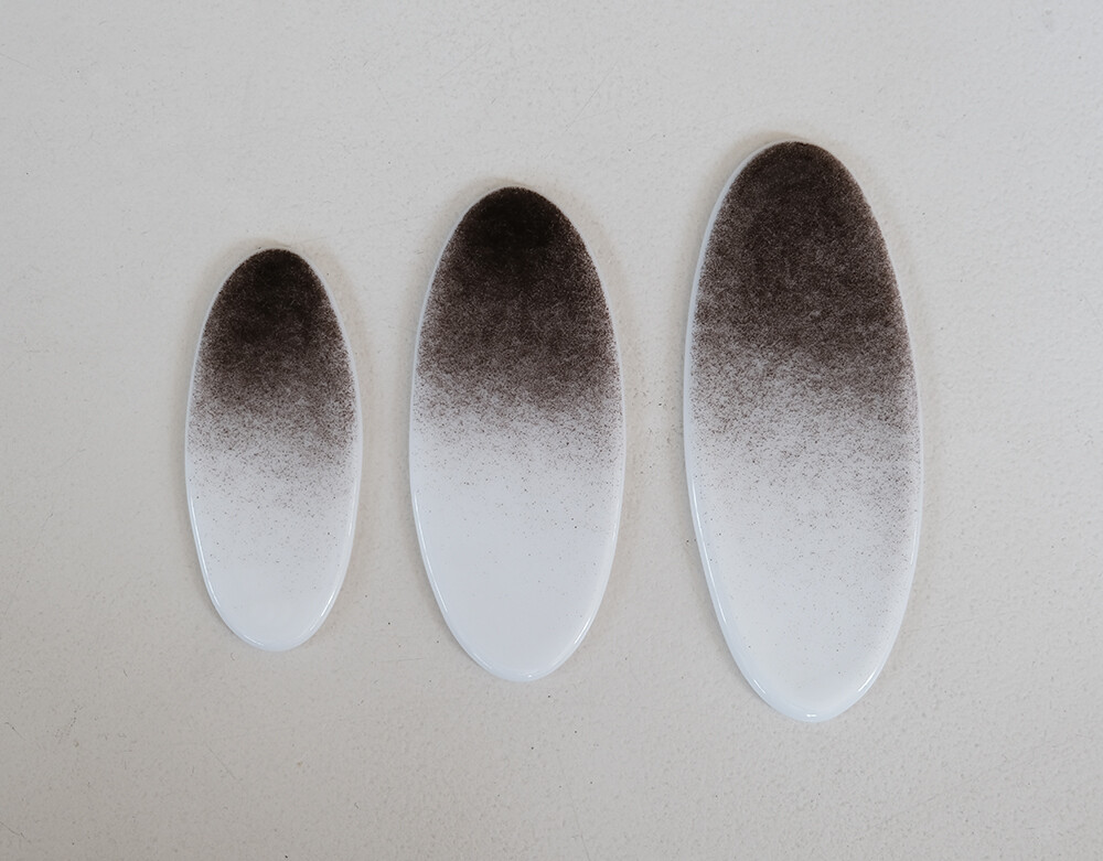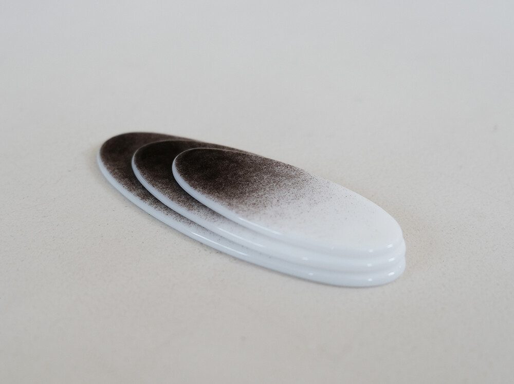 타원형태로 제작된 수저받침 입니다. 검은색이 그라데이션으로 표현되어 마치 수묵화를 연상시킵니다.