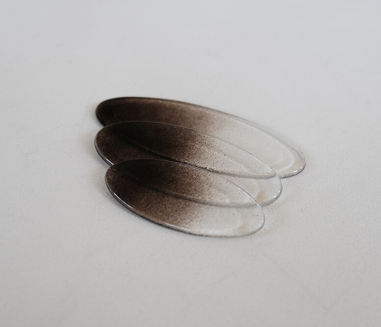 불투명한 유리로 만들어진 수저받침은 뒷면을 투과하지 않아, 짙은 원목의 식탁에서 사용하기 좋습니다.