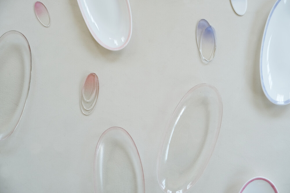 투명한 유리로 만들어진 수저받침은 자연광 아래에서 가장 아름다우며,