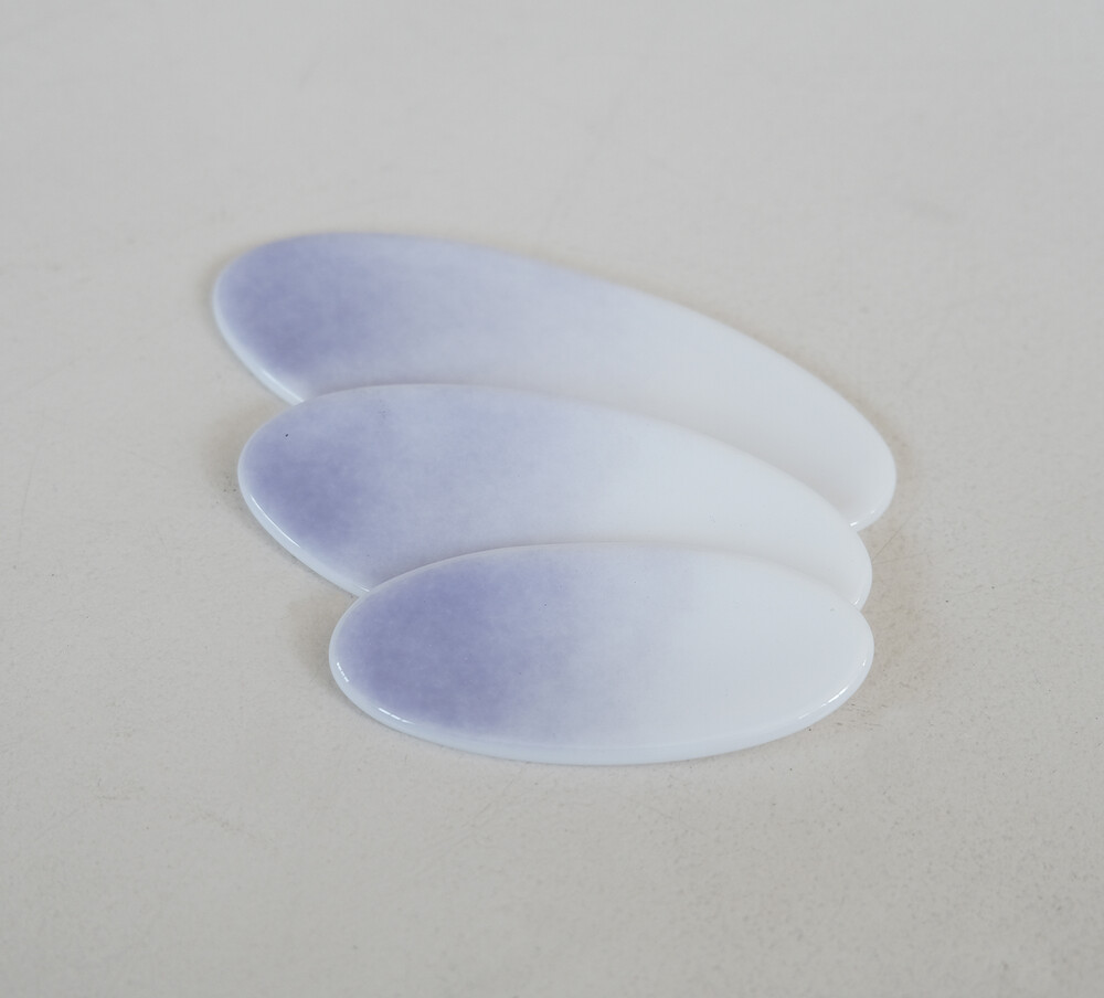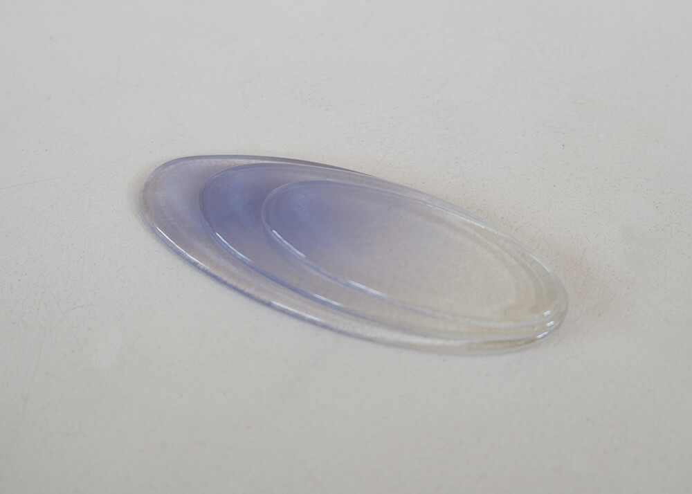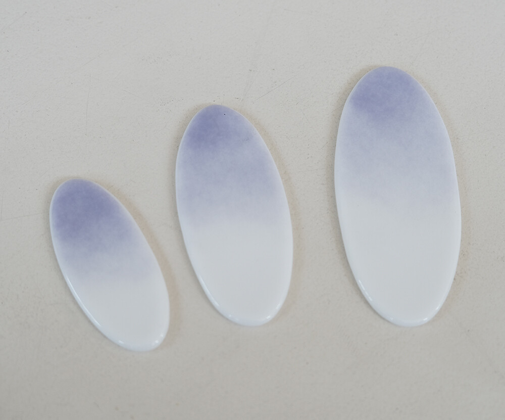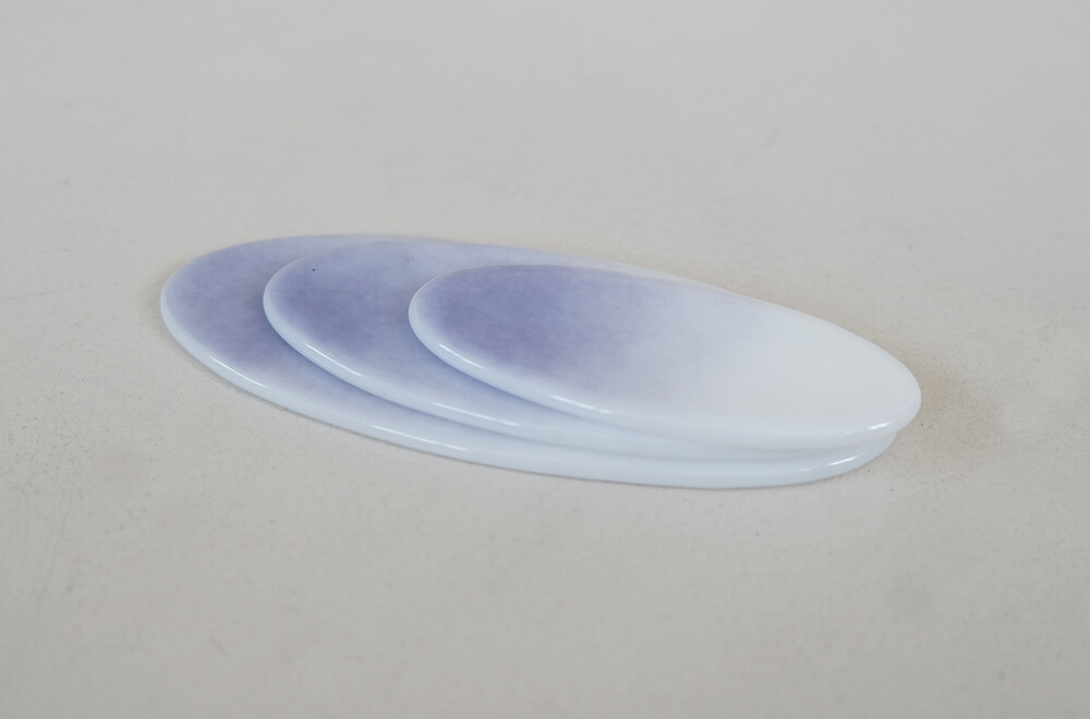 타원형태로 제작된 수저받침 입니다. 보랏빛의 차분한 컬러가 그라데이션으로 표현되어 있는제품입니다.