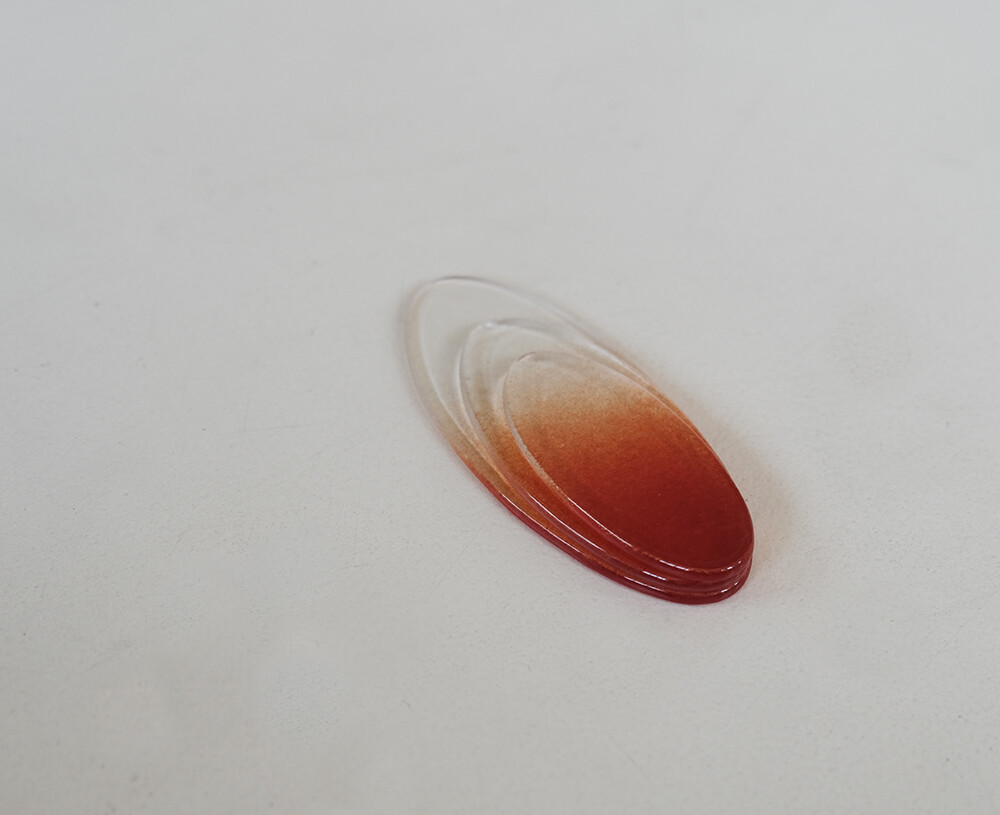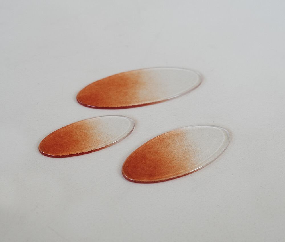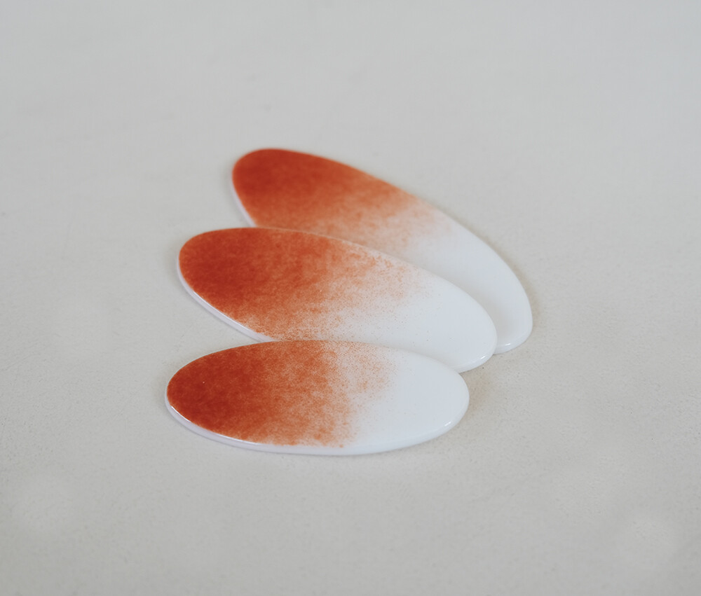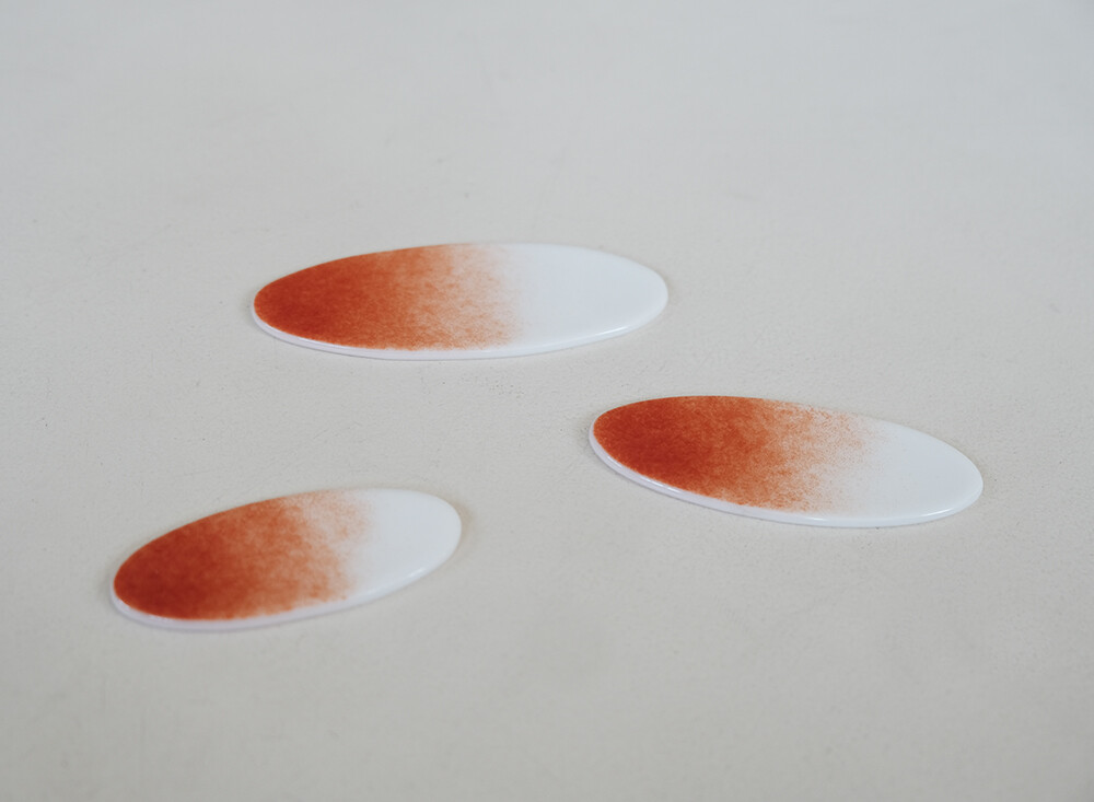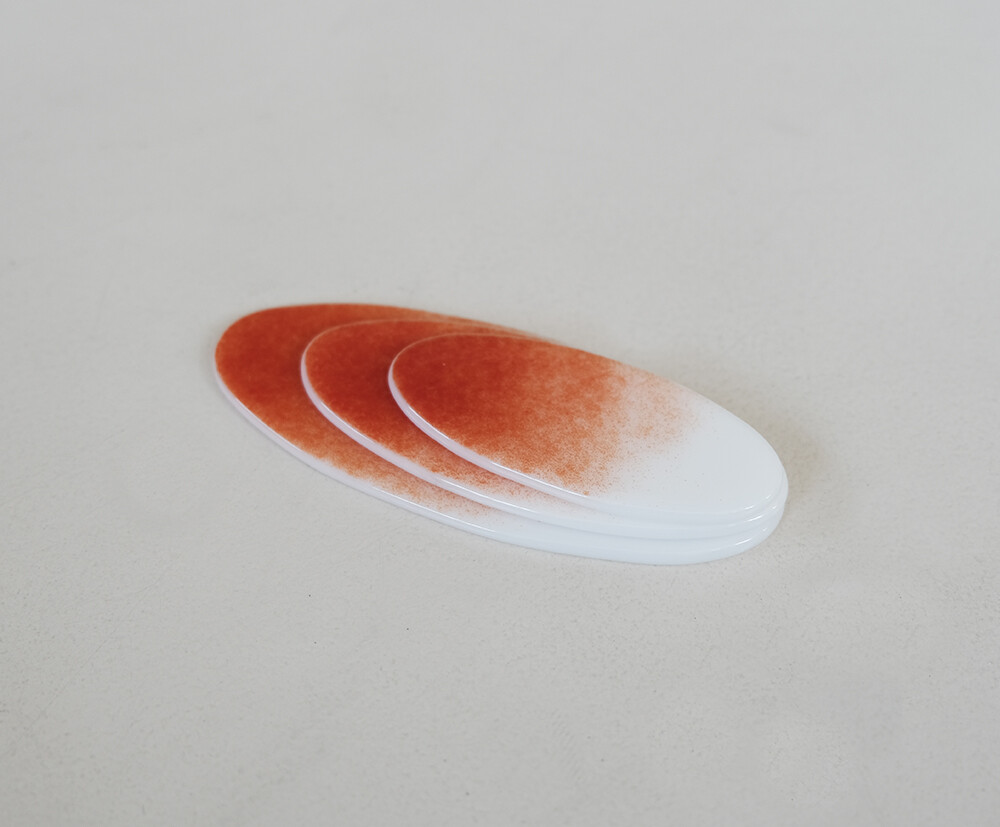 타원형태로 제작된 수저받침 입니다. 븕은색의 그라데이션이 들어가 있어 포인트가 됩니다.