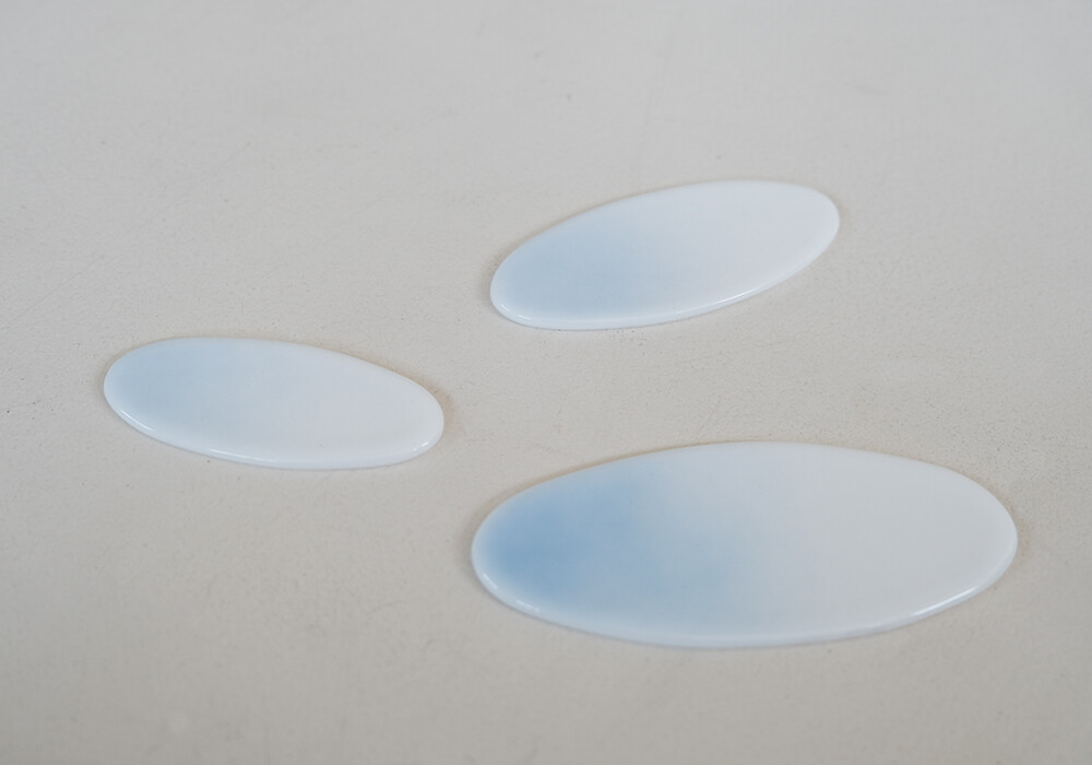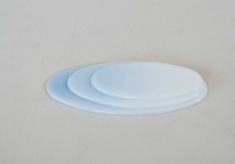 타원형태로 제작된 수저받침 입니다. 차분한 소라색의 그라데이션이 들어가 있어 식탁위의 포인트가 됩니다.